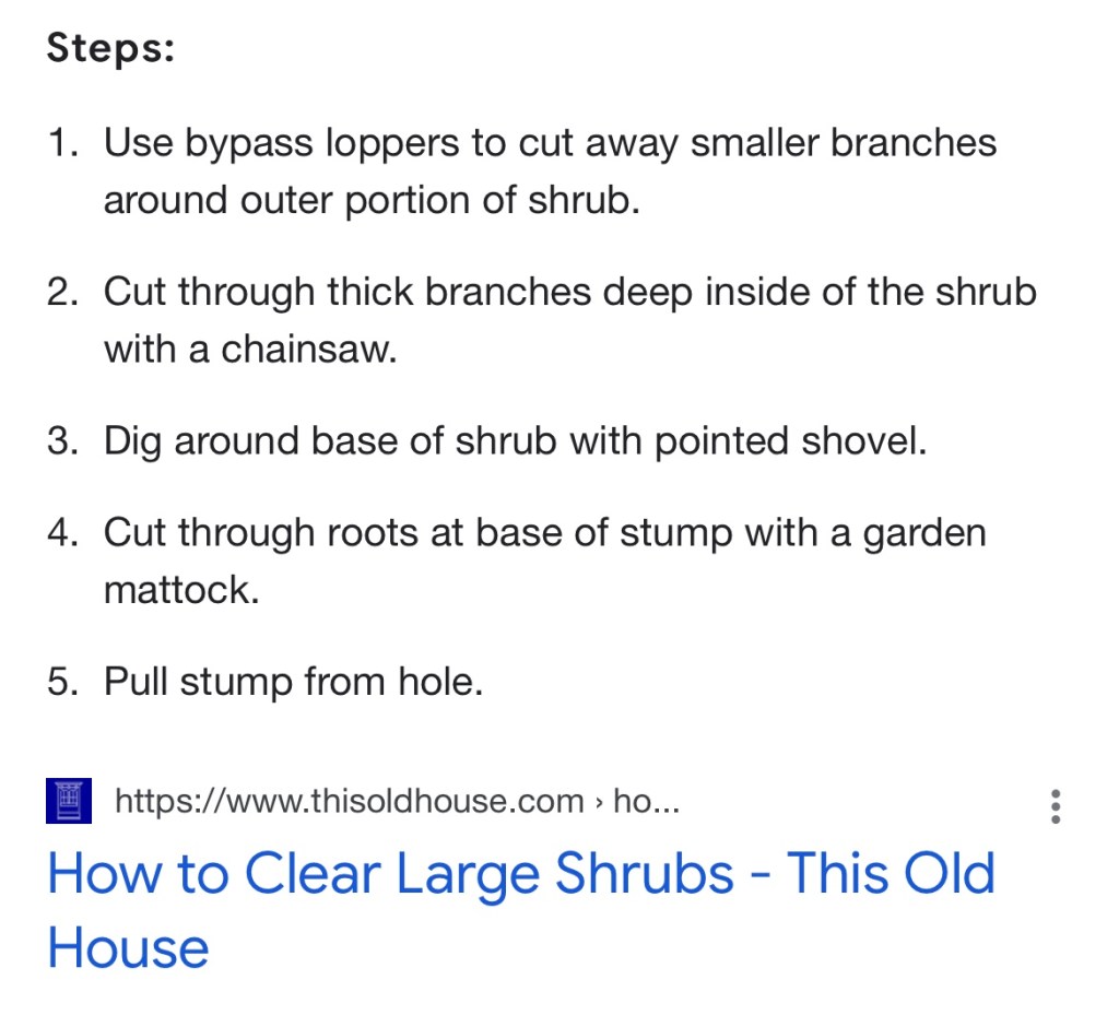 Sawzall to remove woody shrubs Uncategorized https://www.thisoldhouse.com/landscaping/21016982/how-to-clear-large-shrubs
